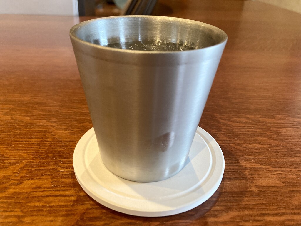 アルミ製のコップに入ったお冷を出していただき、器やコースターなどからも店主のこだわりを感じました。