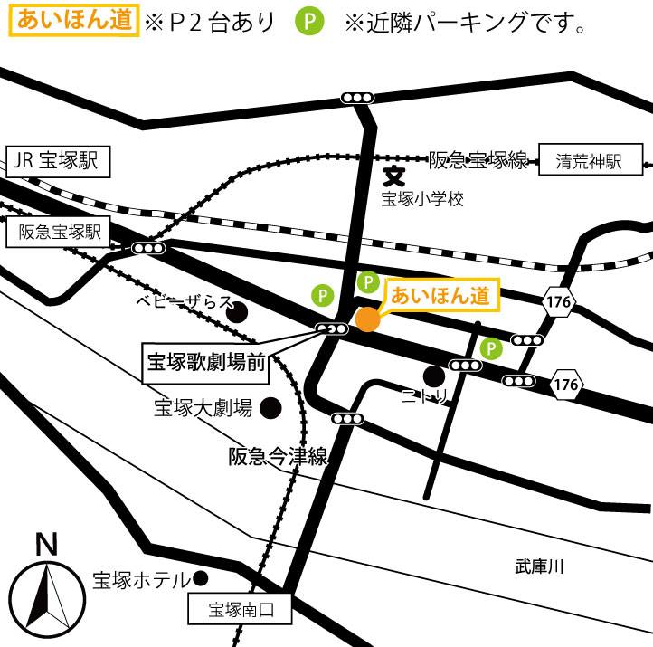 あいほん道は、店舗拡張に伴い2017年10月14日に176号沿いの宝塚歌劇場前交差点の北東角に移転リニューアルオープンしたiphone修理専門店で、データ移行、中古買取、グッズ販売も行っている。最近では、iphoneの新機種発売に伴いサービスのラインナップも増やしてきている。