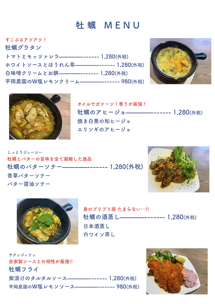 宝塚 ワンちゃんと一緒に入れる公園前牡蠣専門店メニュー1