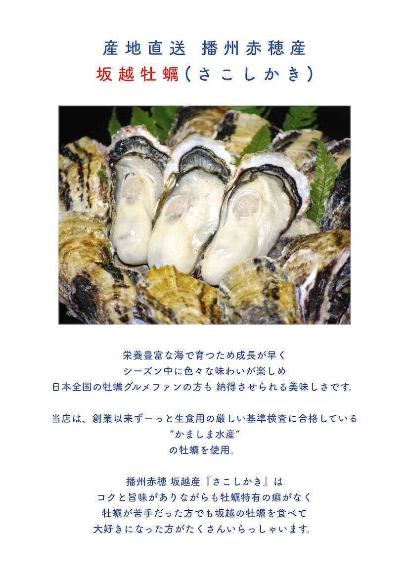 今回の衣替えを店主Sakaiさんに聞くと、坂越牡蠣の漁師さんから直送されるとのことで、赤穂坂越の牡蠣が宝塚で食べれるお店としてアピールしていくとの事。
