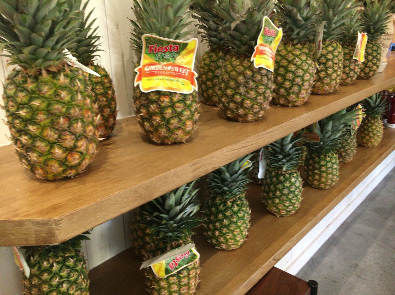 お店の名前のパイナップルがたくさん並べられています。