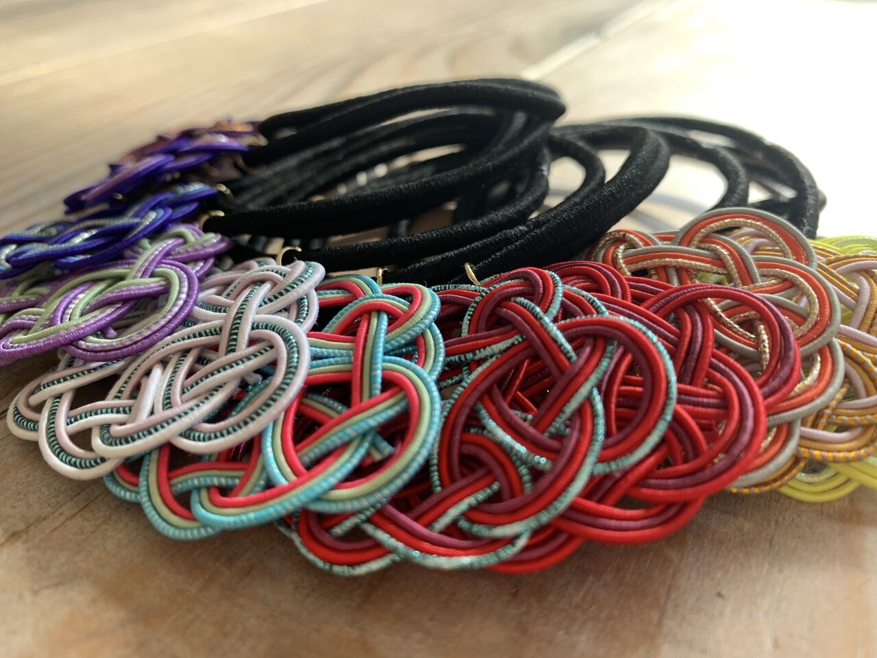 もともと日本文化好きで着物の着付教室をしていた店主の yumi さんは、「水引」を材料にしてつくるアクセサリーが、思いの外、色が綺麗で沢山の種類がある事と、軽くて丈夫なところが気に入ってはじめたという。さらには、伝統ある日本文化が失われつつある今の日本の中で、「水引」という「縁を結ぶモノ」で作った日本のものが、ちょっとした工夫で普段の生活に馴染み、小さな子供や、若い人に、あるいは日本人だけでなく、海外の人への贈り物など使ってもらいたいそうだ。