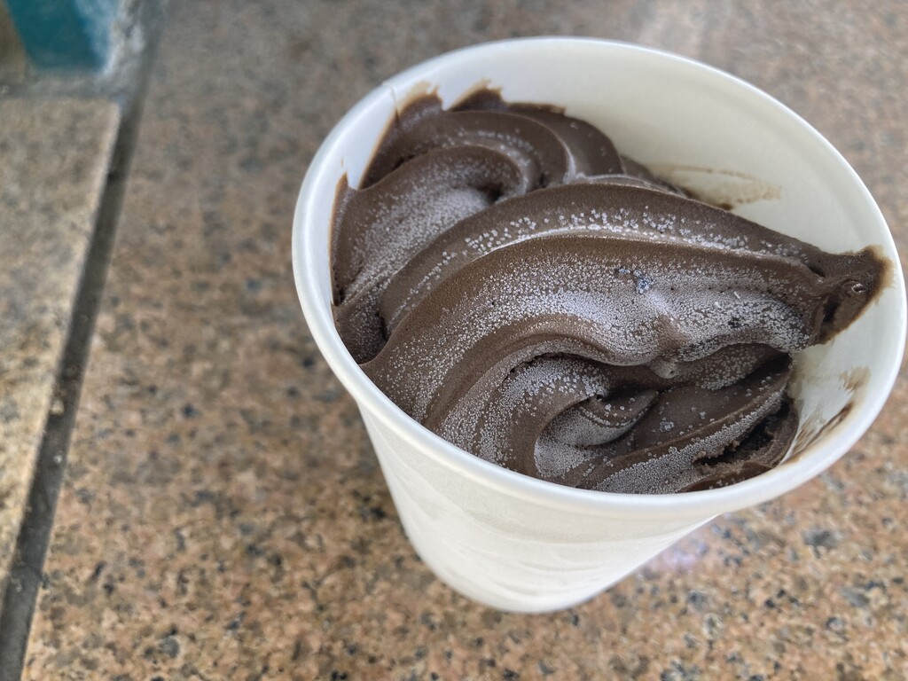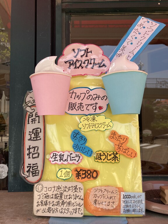 な、なるほど…!てっきり「ソフトアイスクリーム」という商品名のカップ入りアイスがあるのかと思いきや、店主自らがカップにソフトクリームを入れて凍らしていらしたよう!