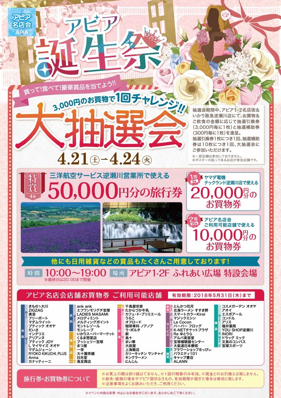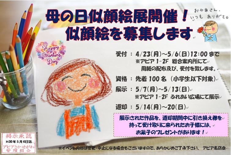 アピア誕生祭大抽選会4/24まで。母の日似顔絵募集始まる