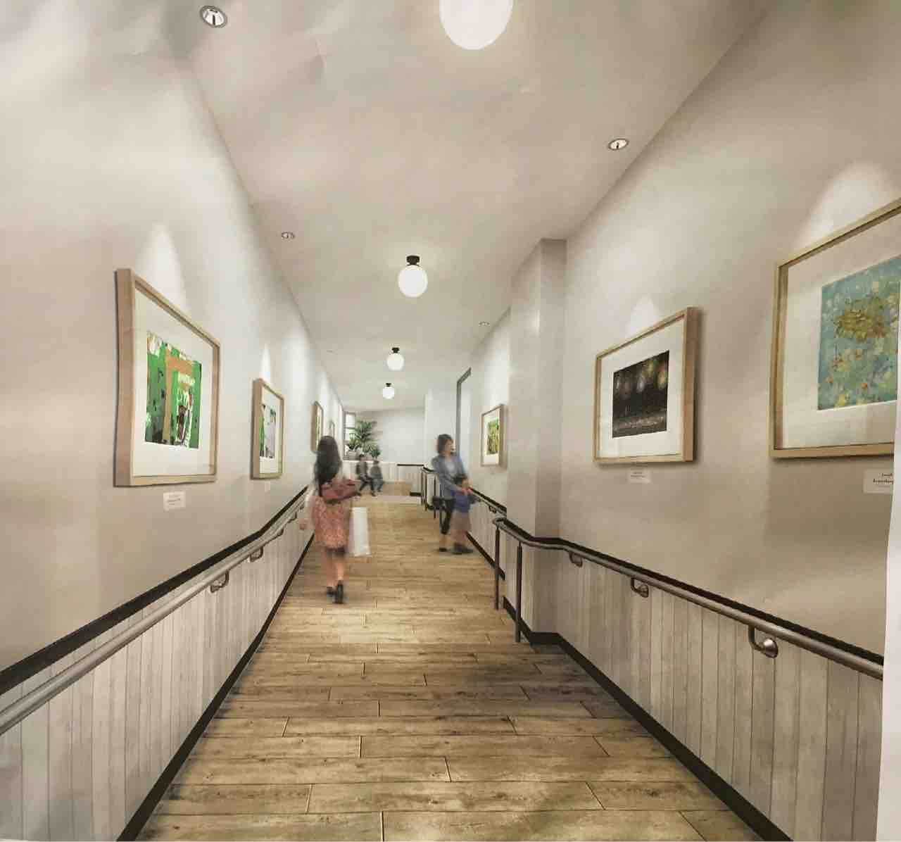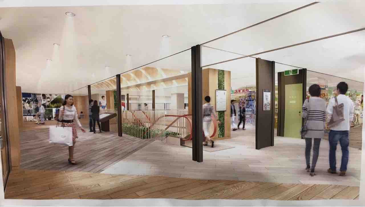 2階のエスカレーター付近も、シックな木目調になるようです。