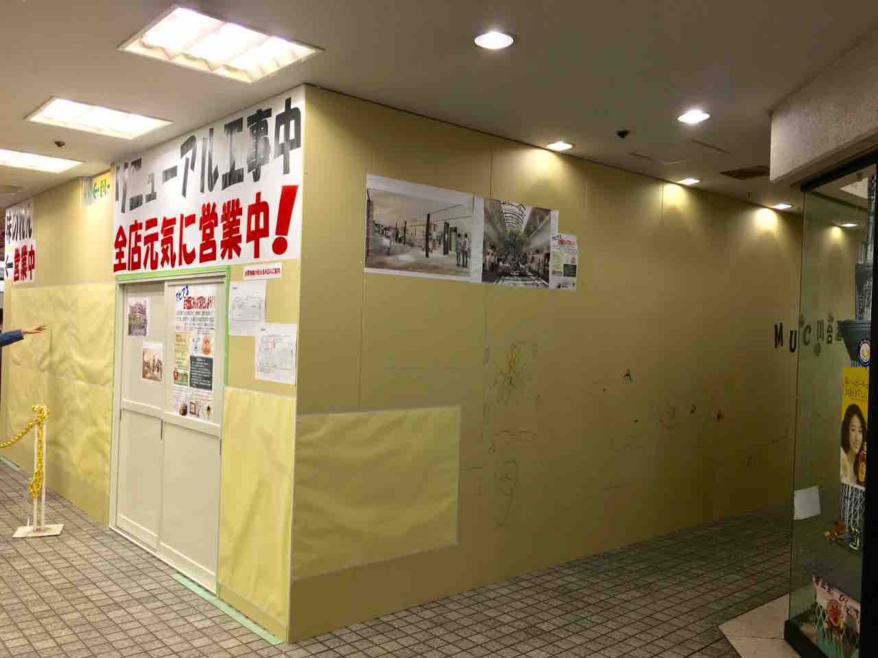リニューアルされる1階の中央広場は、工事のための囲いを設置されています。