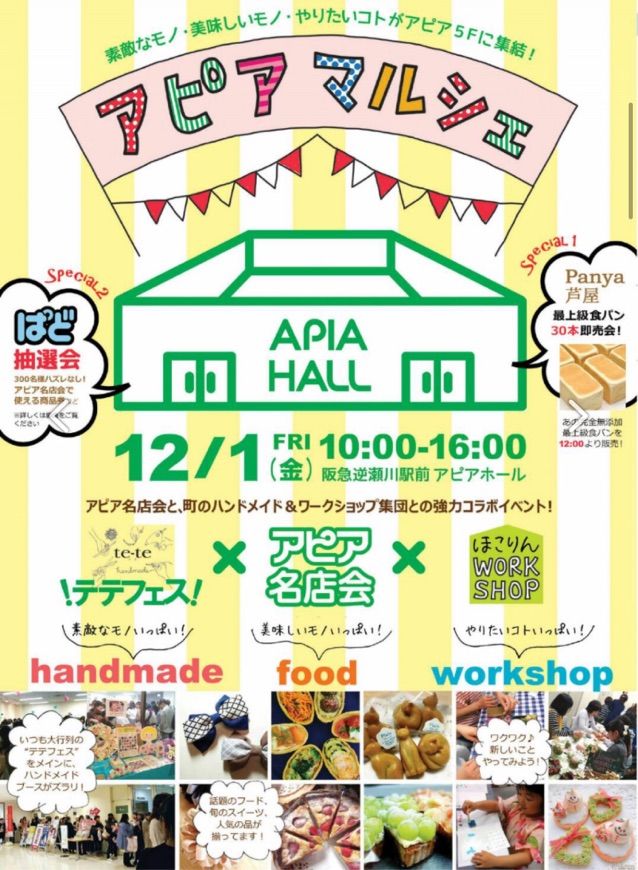 12/1(金)「アピアマルシェ開催(入場無料)」ハンドメイド・美味しいもの・ワークショップ集合