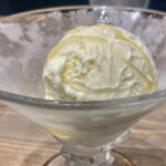 キャラメルのスフレグラッセにはキャラメリゼされたバナナが添えられており、そこに砕いたチョコクッキーのようなショコラのクランブルがかかっています。ほろ苦いキャラメルとバナナやクッキーの甘さが絶妙な甘党さんにおススメの一品。