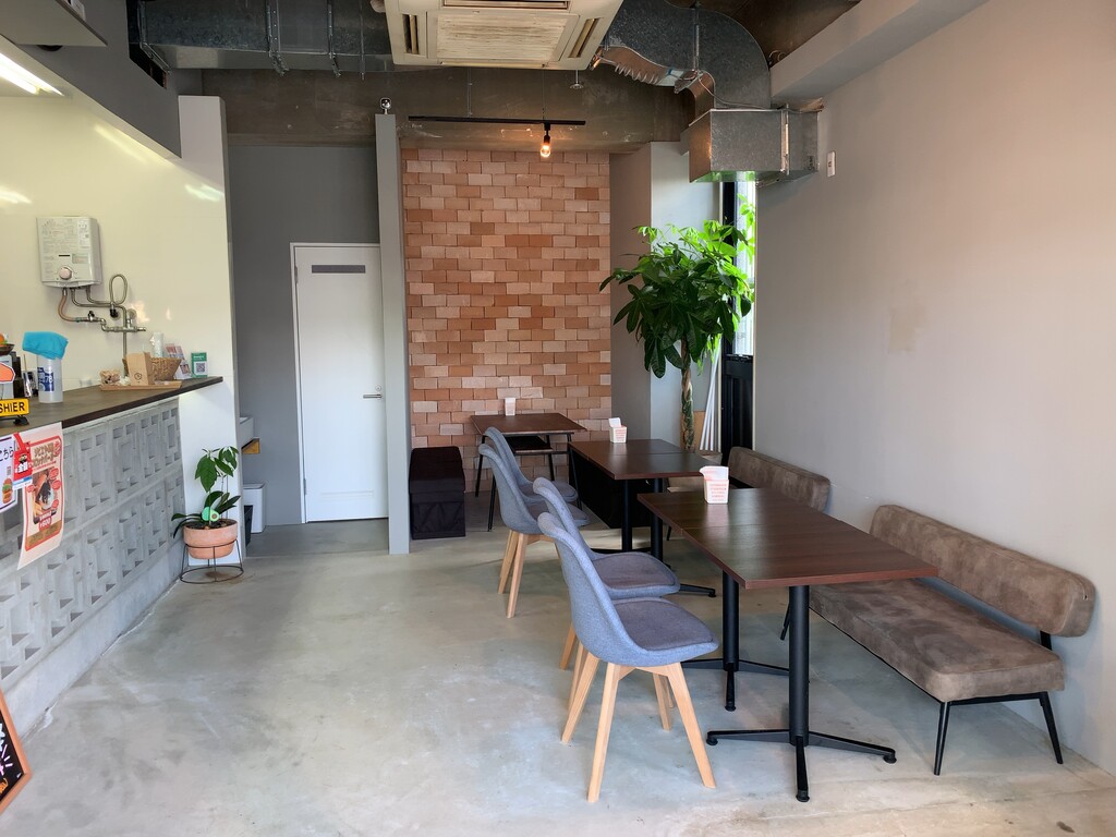 店内の雰囲気ですが、逆瀬川店では古材をつかったテーブルなど、温かみある雰囲気の店舗なのですが、こちらは、カウンターのブロックテイストがリゾートっぽくて、南国の雰囲気を感じさせます。
