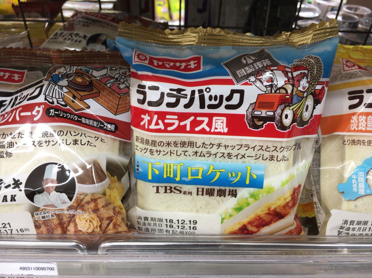 こちらは下町とロケットコラボ製品のヤマザキ ランチパック オムライス風。「新潟県産の米を使用したケチャップとスクランブルエッグをサンドしてオムライスをイメージしました。」とある。下町ロケットは最終回が放送されたが、お正月にまたスペシャル番組があるようだ。