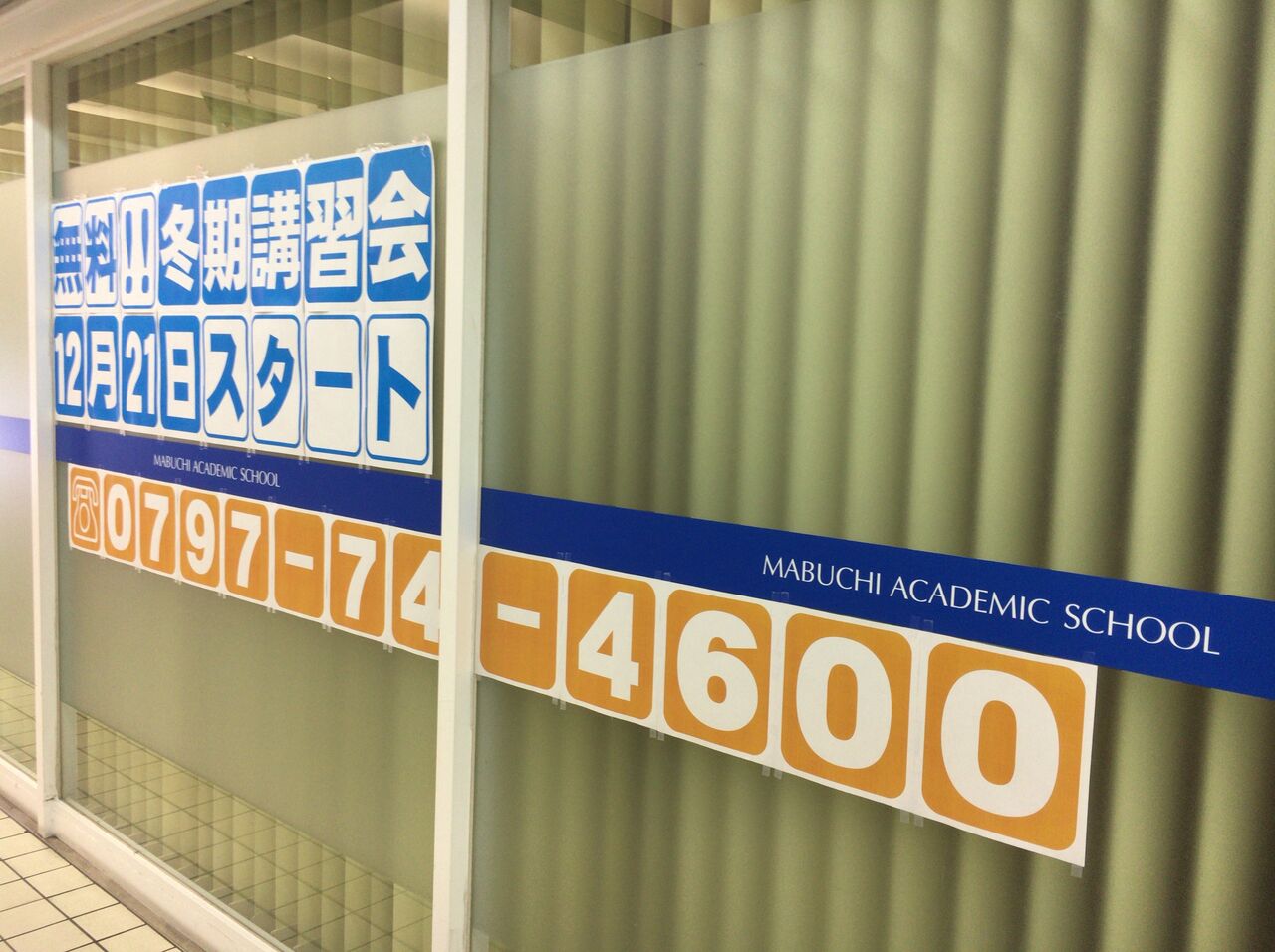 お向かいは馬渕教室。こちらも無料の冬季講習が12/21〜スタートの様子。