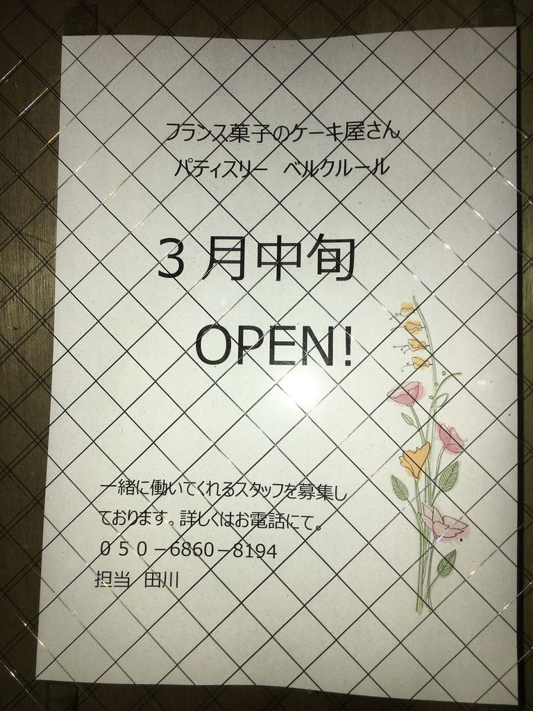 阪急宝塚南口から徒歩1分。いかりスーパー手前の「GeijuCafe」が先月クローズとなり、現在は店舗の内装工事中となっている。新しくオープンするのは、フランス菓子のケーキ屋さん「パティスリー ベルクルール」 3月中旬オープンとの事。周辺に住まう人にとっては、かなりの期待が高まっているはずだ。