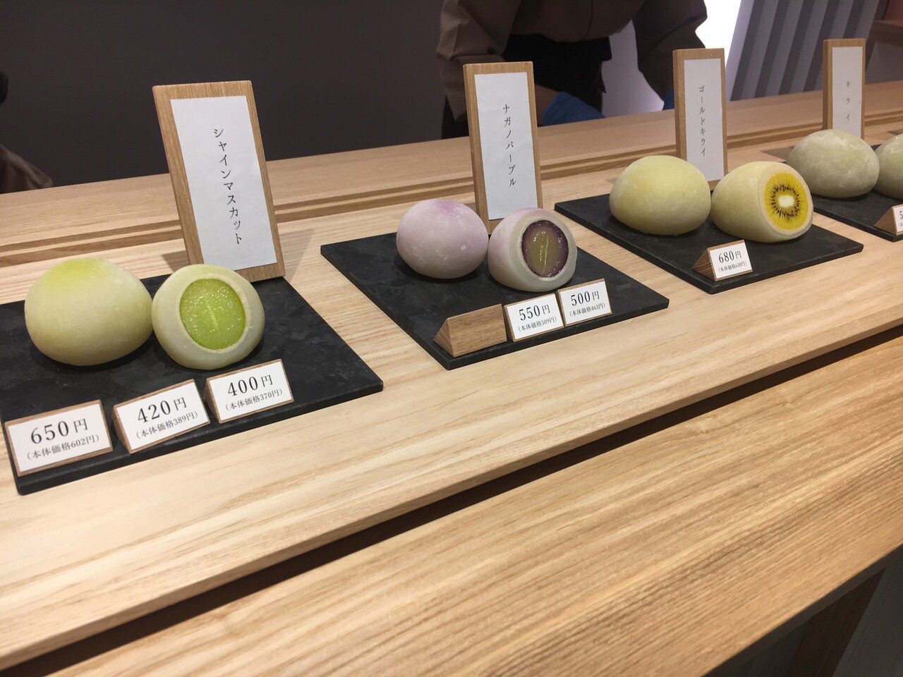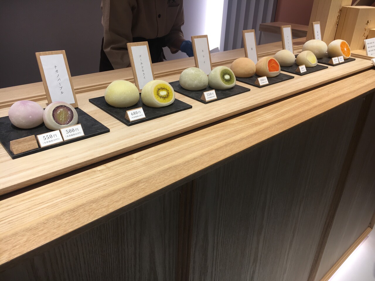 いざ、入店すると木目のカウンターに色とりどりのフルーツ大福がずらっと並んでいます。