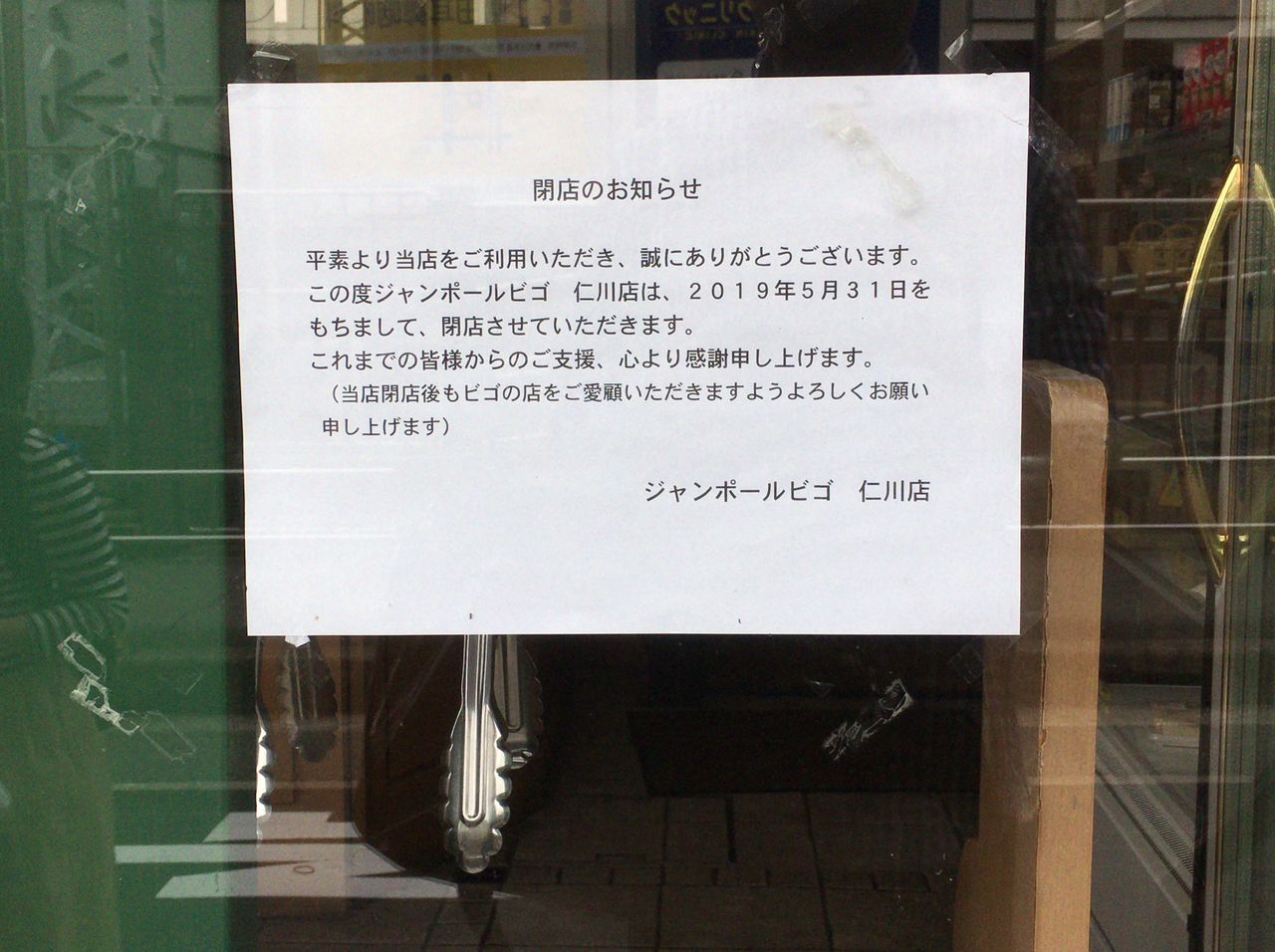 「JEAN-PAUL BIGOT 仁川店」5/31で閉店。最終日は、午前10時頃にほぼ完売。