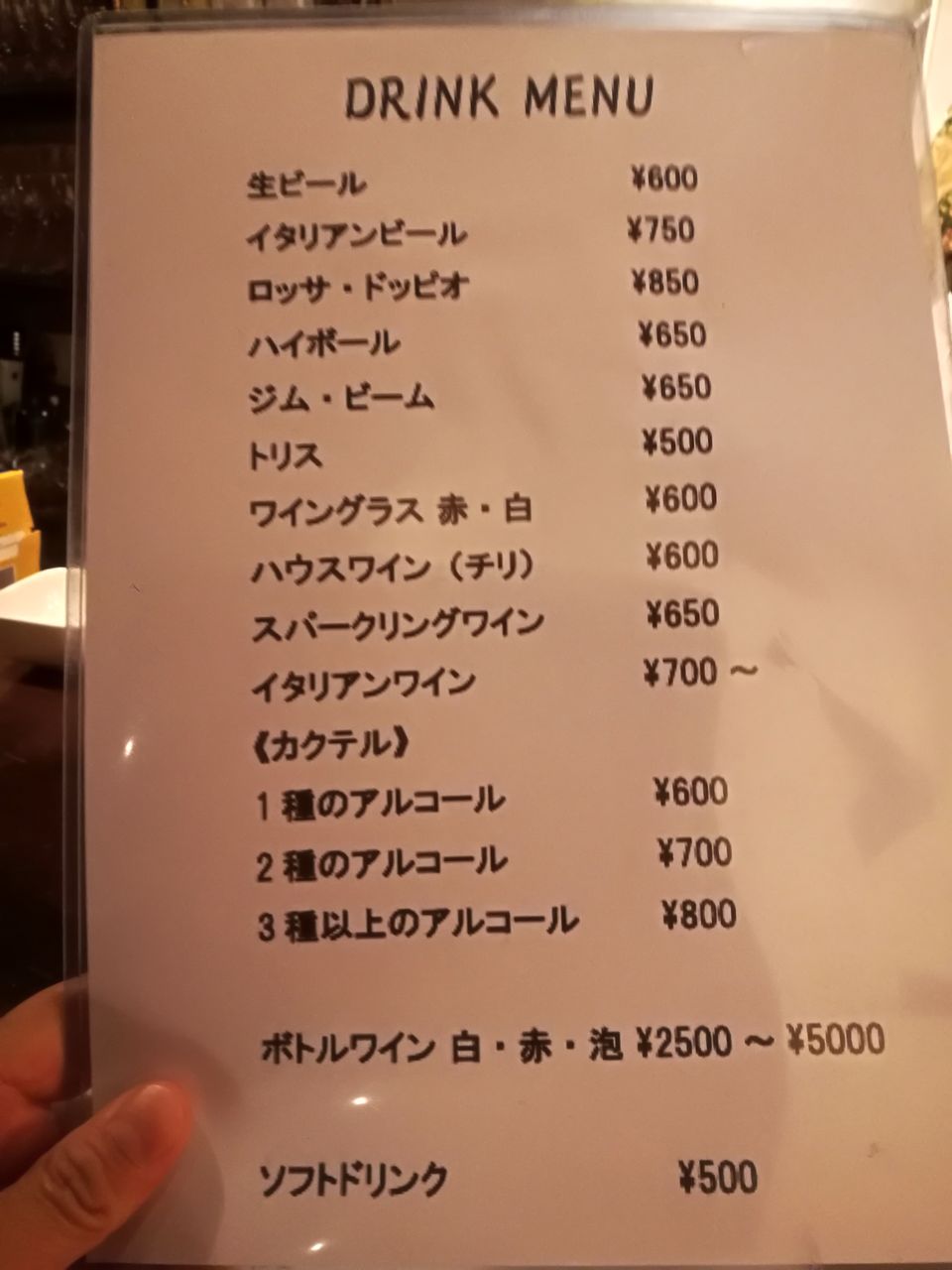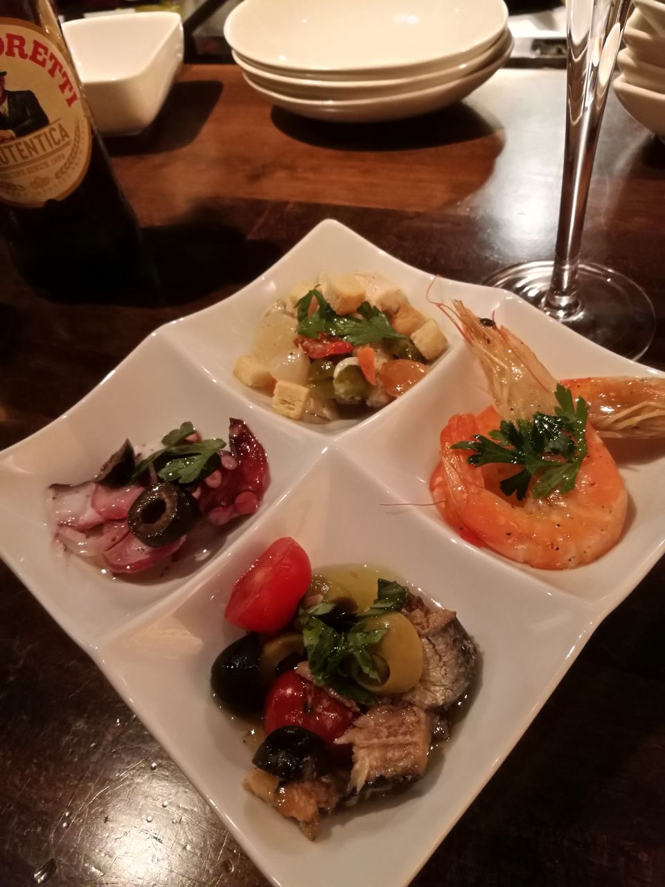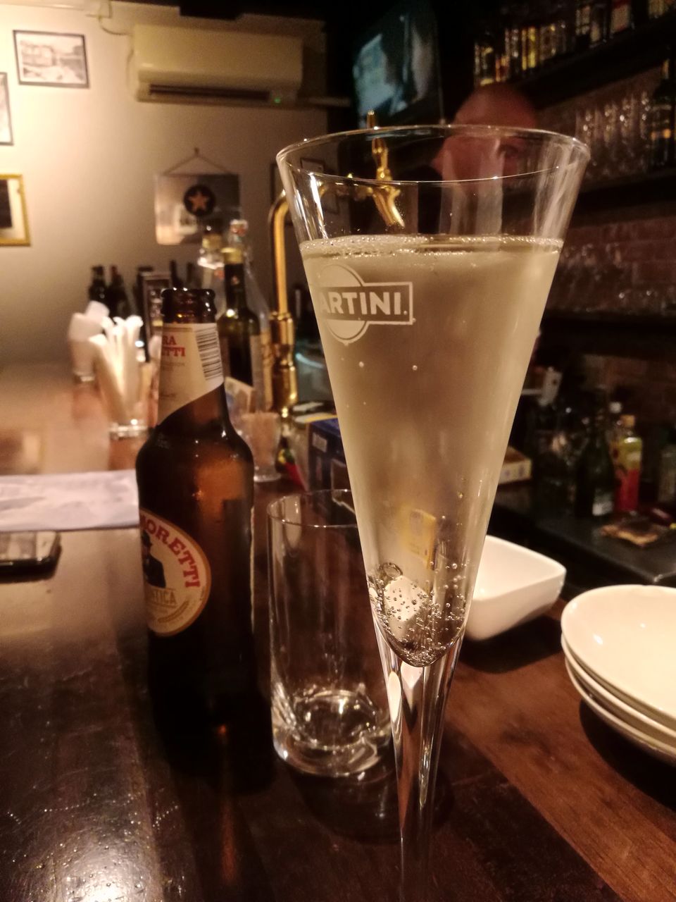 今夜はメニューに載っているイタリアンビールとスパークリングワインをオーダー。