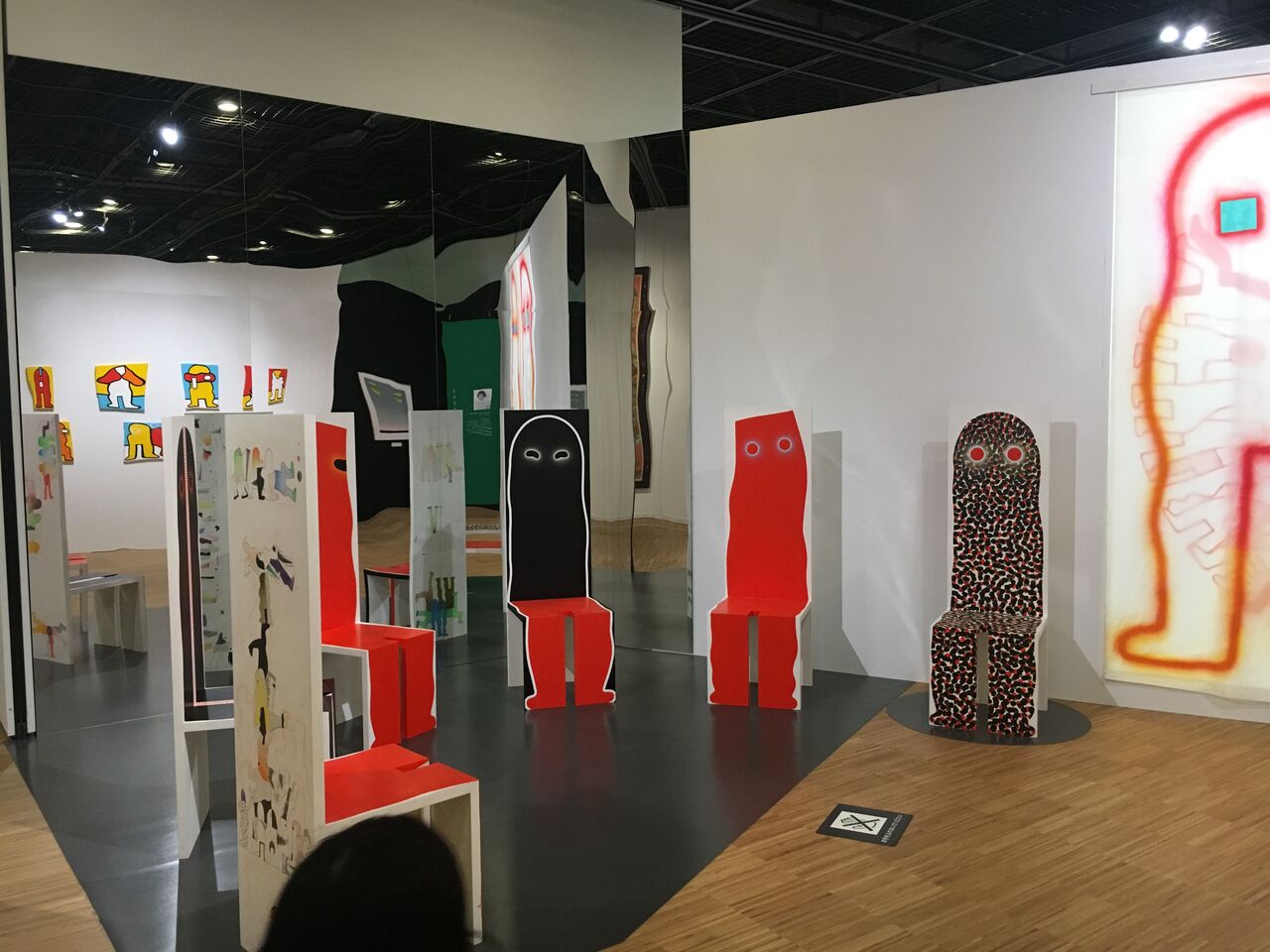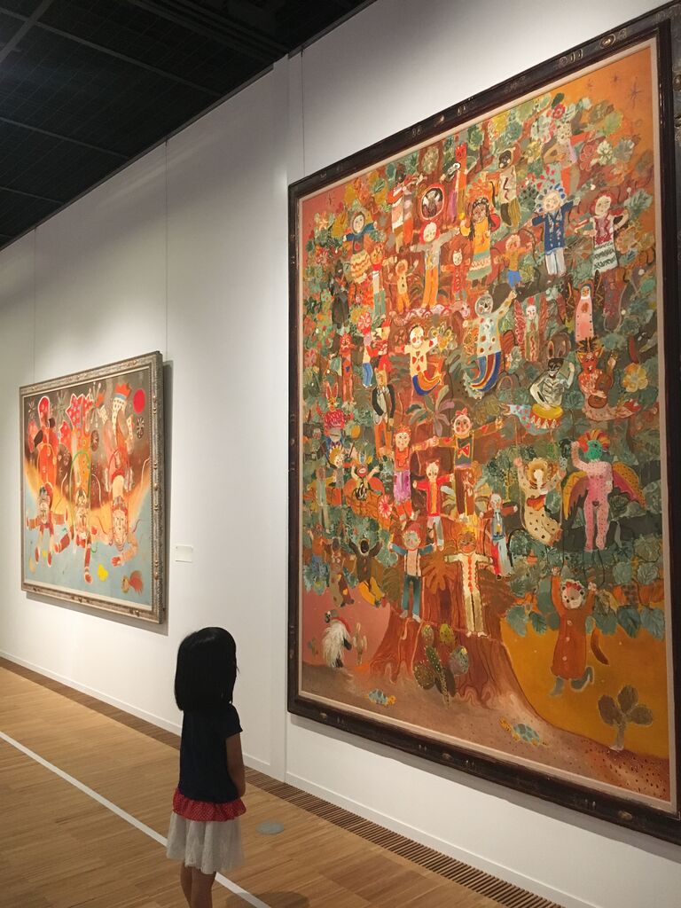 カラフルな色づかいの絵画や、木材の作品、見上げるほど大きな作品や、子どもが「おばけ?」と少し怖がってしまうものも。
