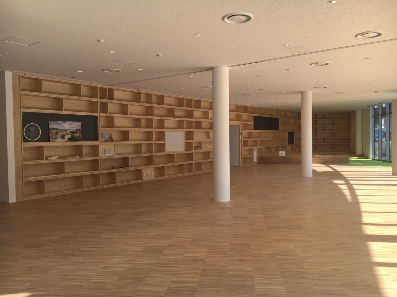 ↓↓↓こちらが、1Fのレイアウト。キューブホール、アトリエ、ライブラリー、キッズコーナーなど、一般市民は1Fの利用は無料で自由に出入りができる。WIFIも完備される予定で、南側の陽当たりの良い場所に机などがたくさん入れば、ちょっとした勉強するスペースも出来るかもしれない。