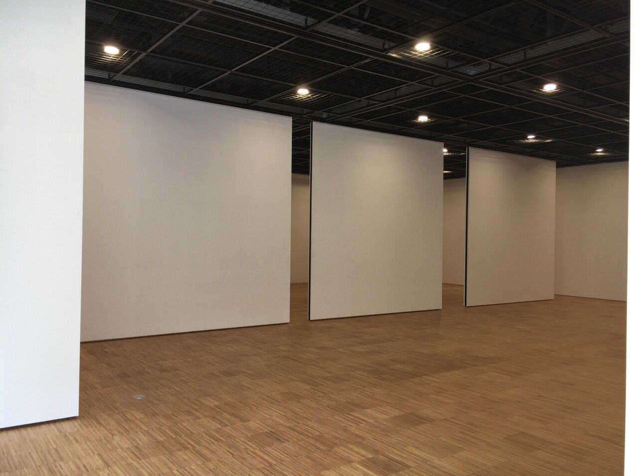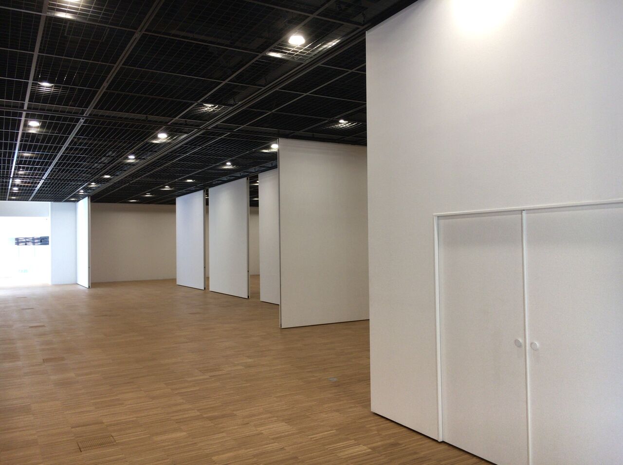 2Fメインギャラリー。かなりの広さがあり、可動式の吊り式仕切りで多様なレイアウトが実現できる。