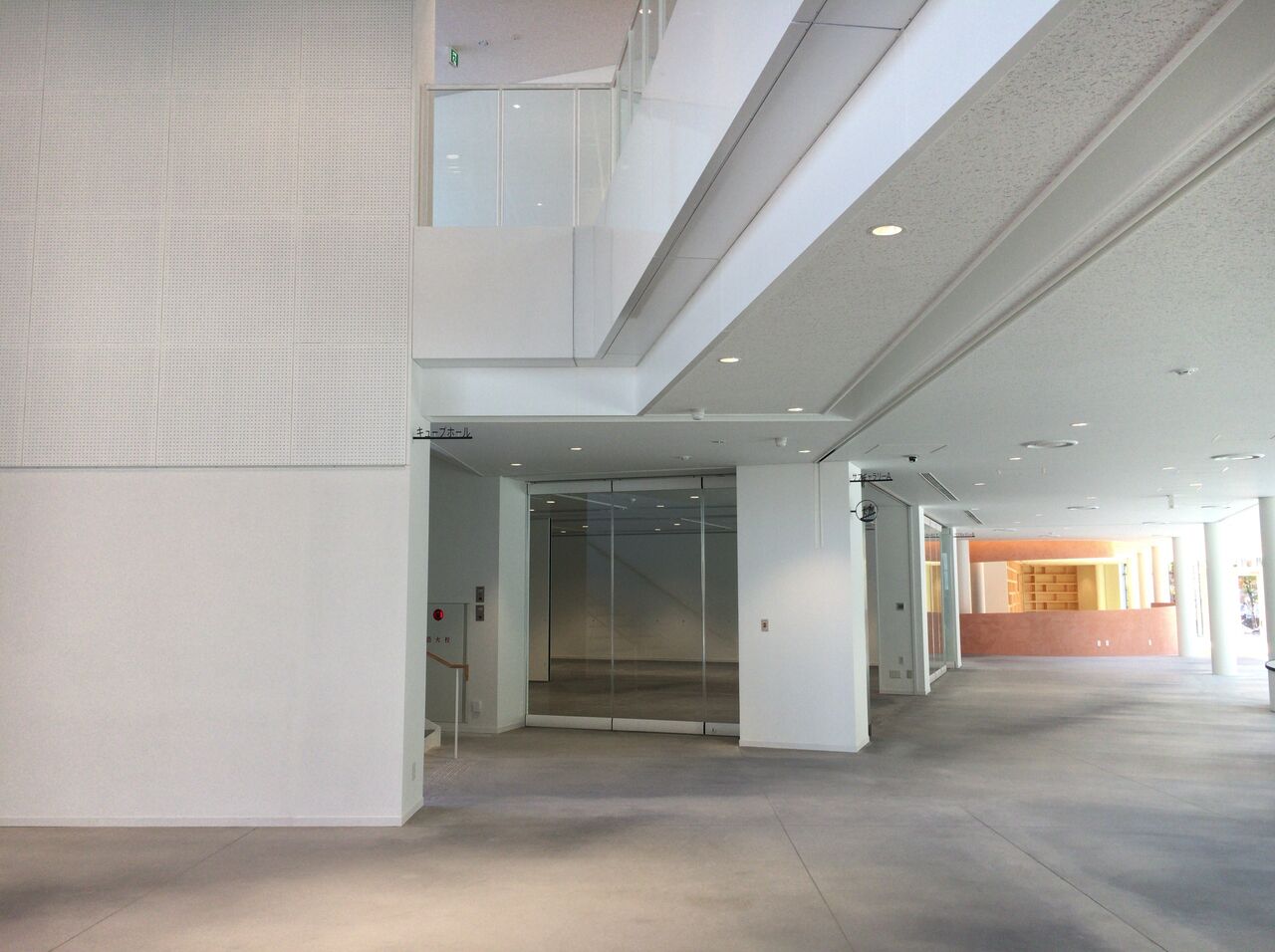 キューブホールからサブギャラリー、アトリエ方向の視界。サブギャラリーは展示のみならず、従来のギャラリー利用にとらわれない形での利用を想定しており、多様な提案を受けながら新しい事を進めていきたいとの話もあった。