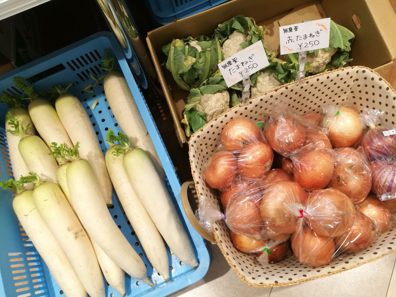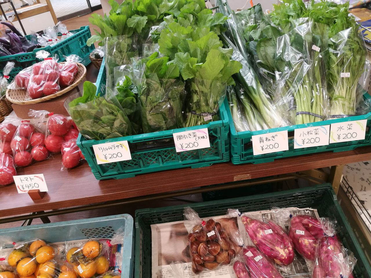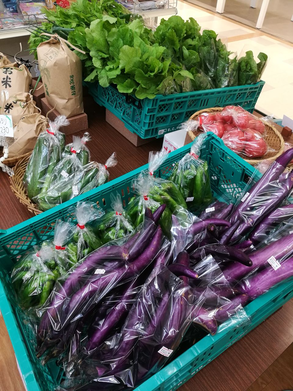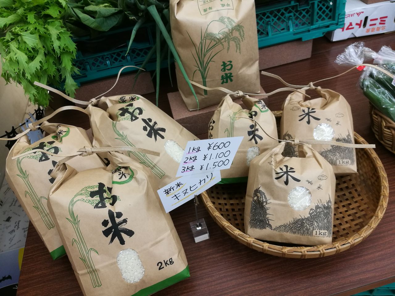 西谷地区のお米や、新鮮な有機栽培野菜が並んでいました。