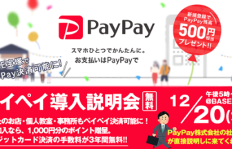 【PayPay導入説明会】12/20(木)BASE宝塚で説明会が開催される!…