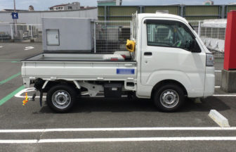 とある駐車場軽トラ写真の左下あたりに黄色い何か。カザグルマだ。よく見ると3つ。車の持ち主が付けたのだろう。運転する人…