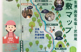 JR宝塚駅の改札でてすぐ左側のチラシ群に目が行き手に取ってみた。JR福知山線 生瀬・西宮名塩〜武田尾「廃線敷マップ」のチラ…
