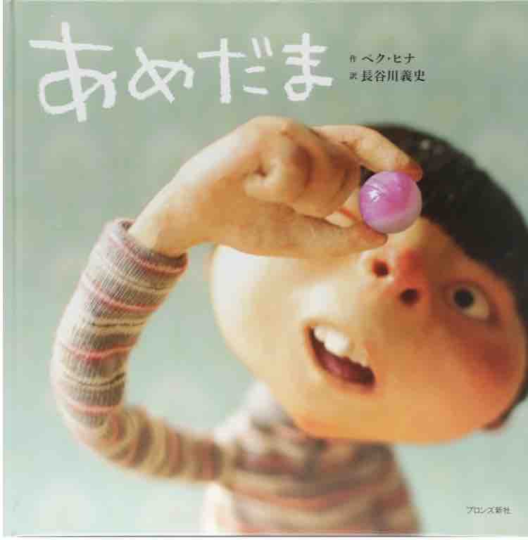 イベントの後半では、韓国人ママの 岡山ヘヨンさん がペク・ヒナ作『あめだま』を楽しく読み聞かせしてくれます。『あめだま』は、ペク・ヒナさんが2005年ボローニャ国際児童図書展・年間最優秀作家賞 を受賞した代表作。スカルピー(ポリマー粘土)の人形を背景とともに撮影した立体的な3Dイラストレーションの絵本で、独特の世界観と温かいストーリーが魅力です。