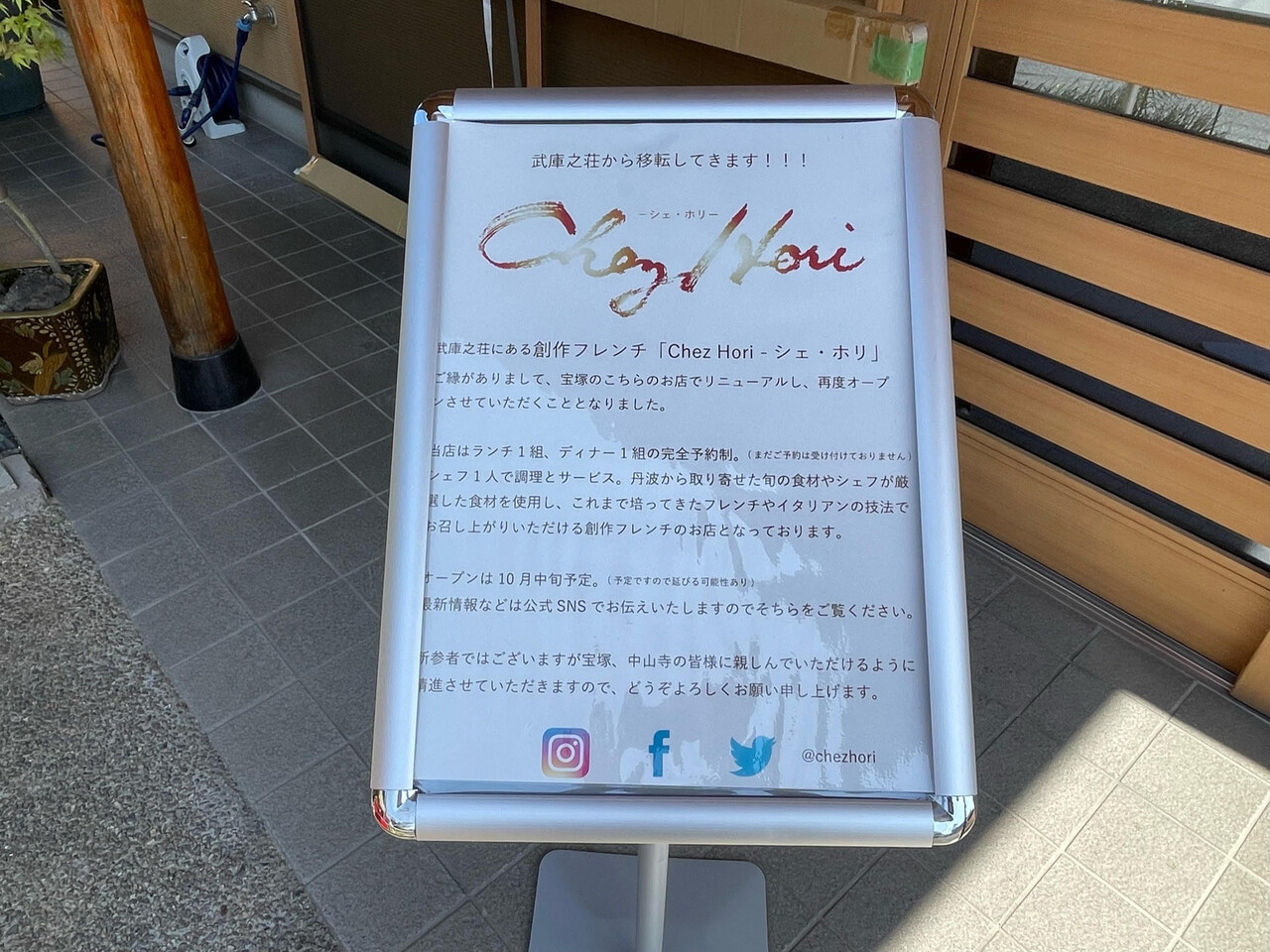 阪急中山観音駅からすぐのところにあった丹後屋さんの跡地に、武庫之荘で大人気だったフレンチのお店Chez Hori -シェ・ホリさんが移転して来られるようです。