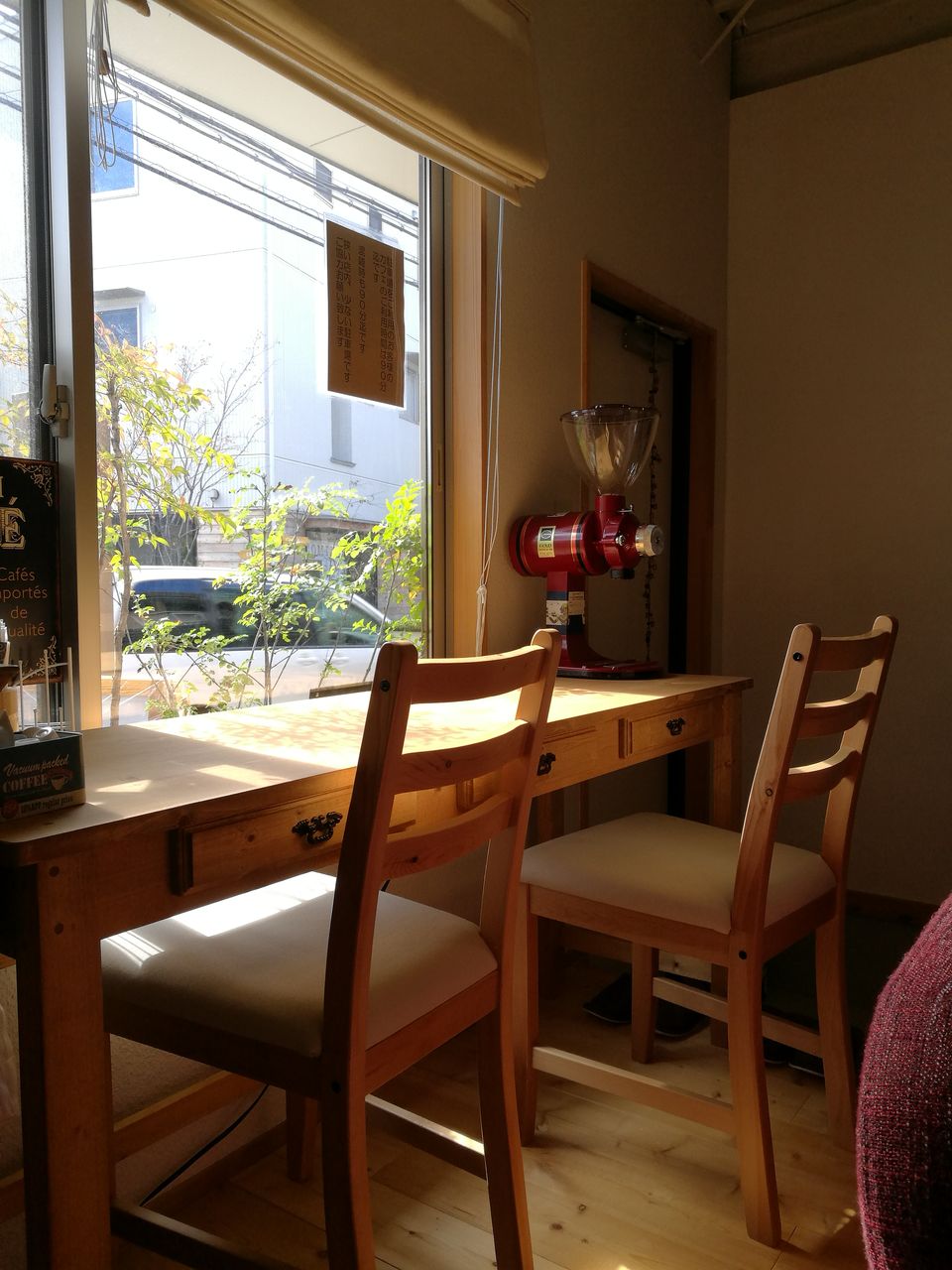 窓側と店内壁側にカウンター席がそれぞれ2席、二人掛けのテーブル席が4つあります。