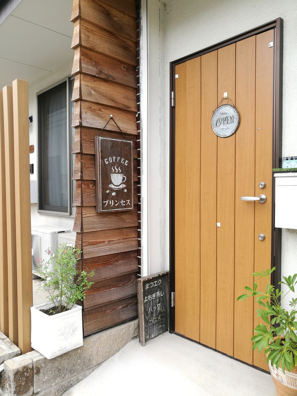 こんな素敵なパフェを提供しているお店が小林にあるなんて!と、少し前から狙っていた「コーヒープリンセス」。小林といっても駅の近くではなさそう。ネットで検索して地図を頼りに下見に行ってみた。イズミヤ小林店横の道、さんかくカフェを過ぎて、中津浜線を渡り、百合珈琲も過ぎて、少し行くと左側にリノベーションされたお洒落な2階建ての長屋が見つかった。その一軒が「コーヒープリンセス」。
