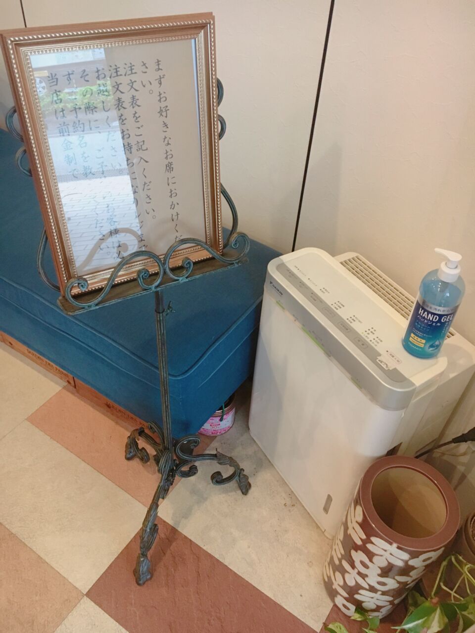 店内に入ると、事前会計制の案内があります。