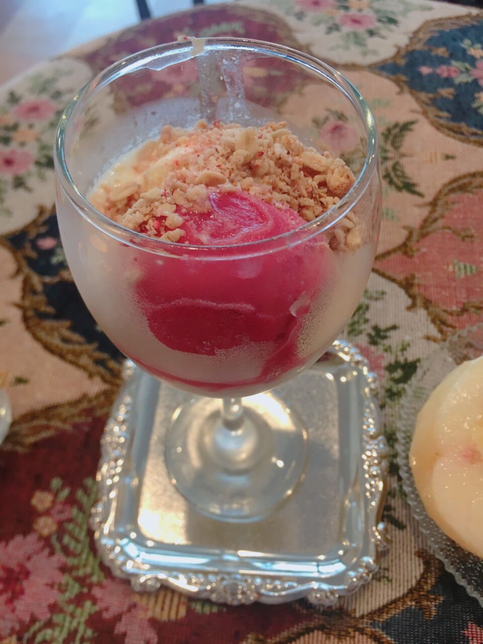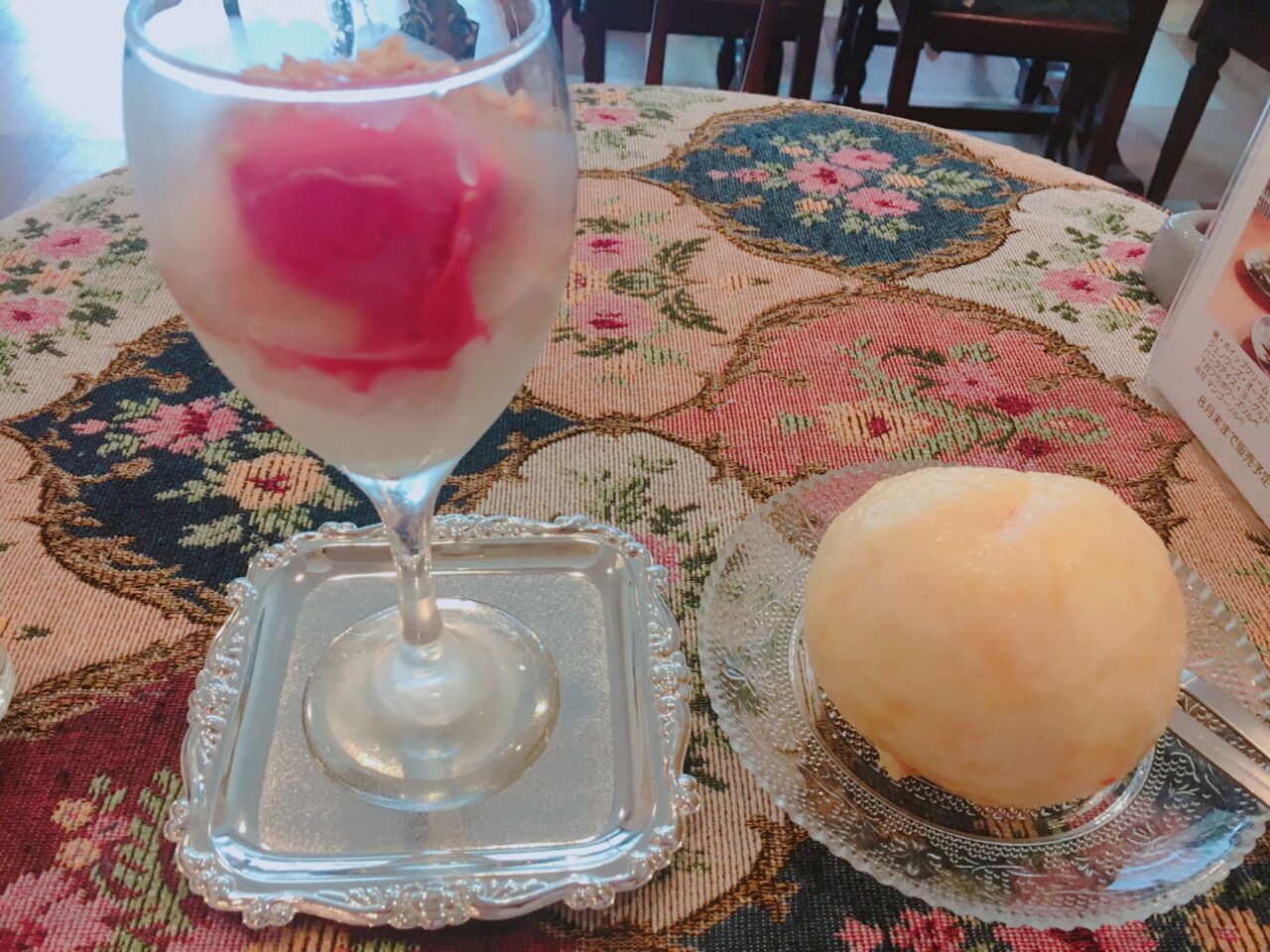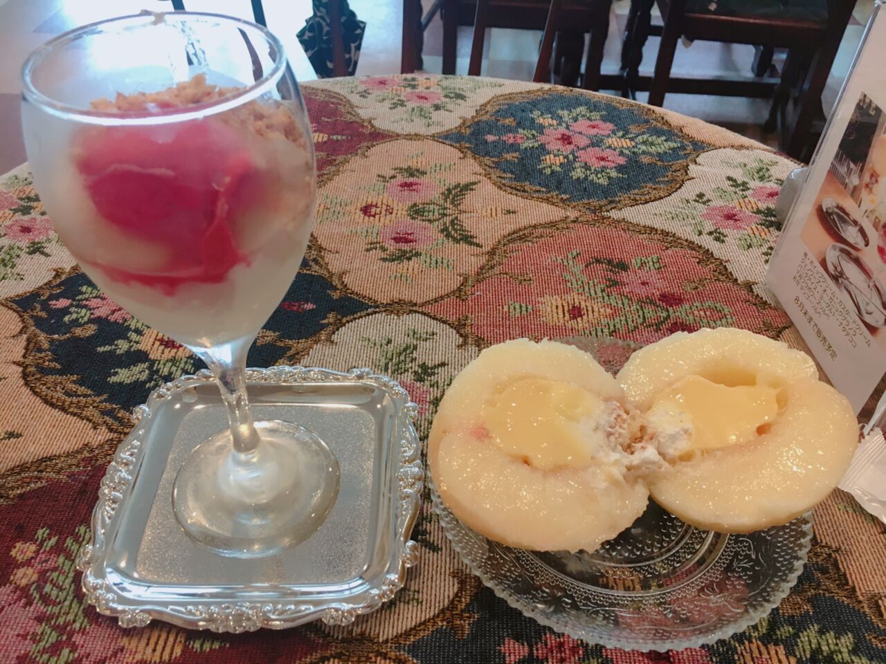 食べ方に困ってしまいそうですが、店員さんがフォークとナイフで桃をお皿に置いて食べてください、と丁寧に教えて下さいました。