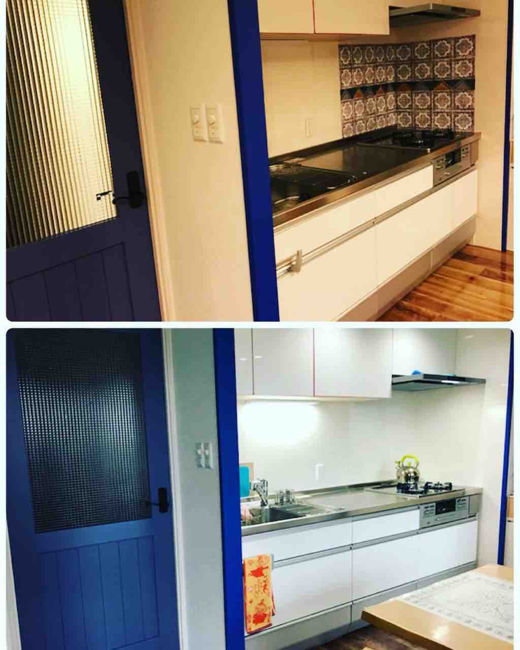 台所の壁のタイル、実は耐熱性タイルステッカーを貼っただけ。