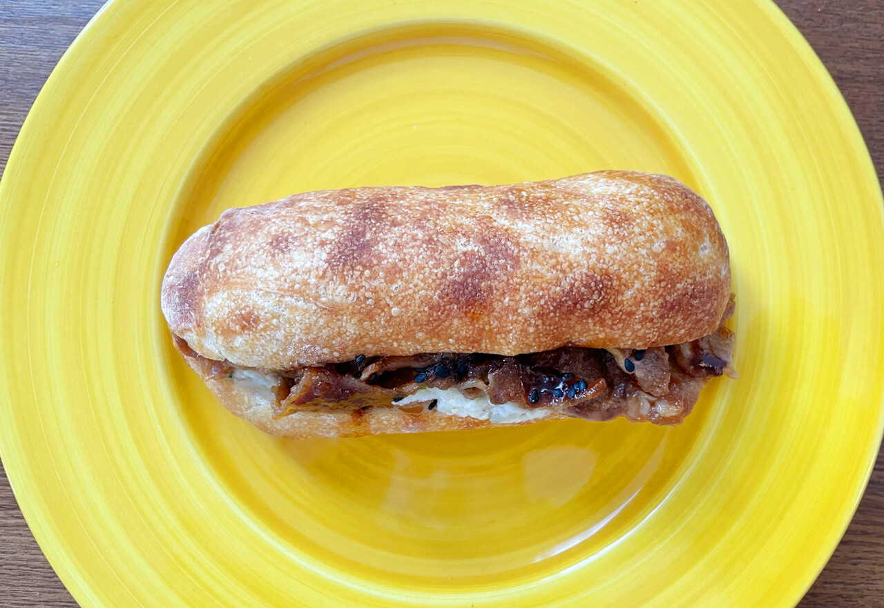 こちらは赤玉ねぎのマリネと共にベーコン、カマンベールチーズ、そしていちじくがサンドされています。