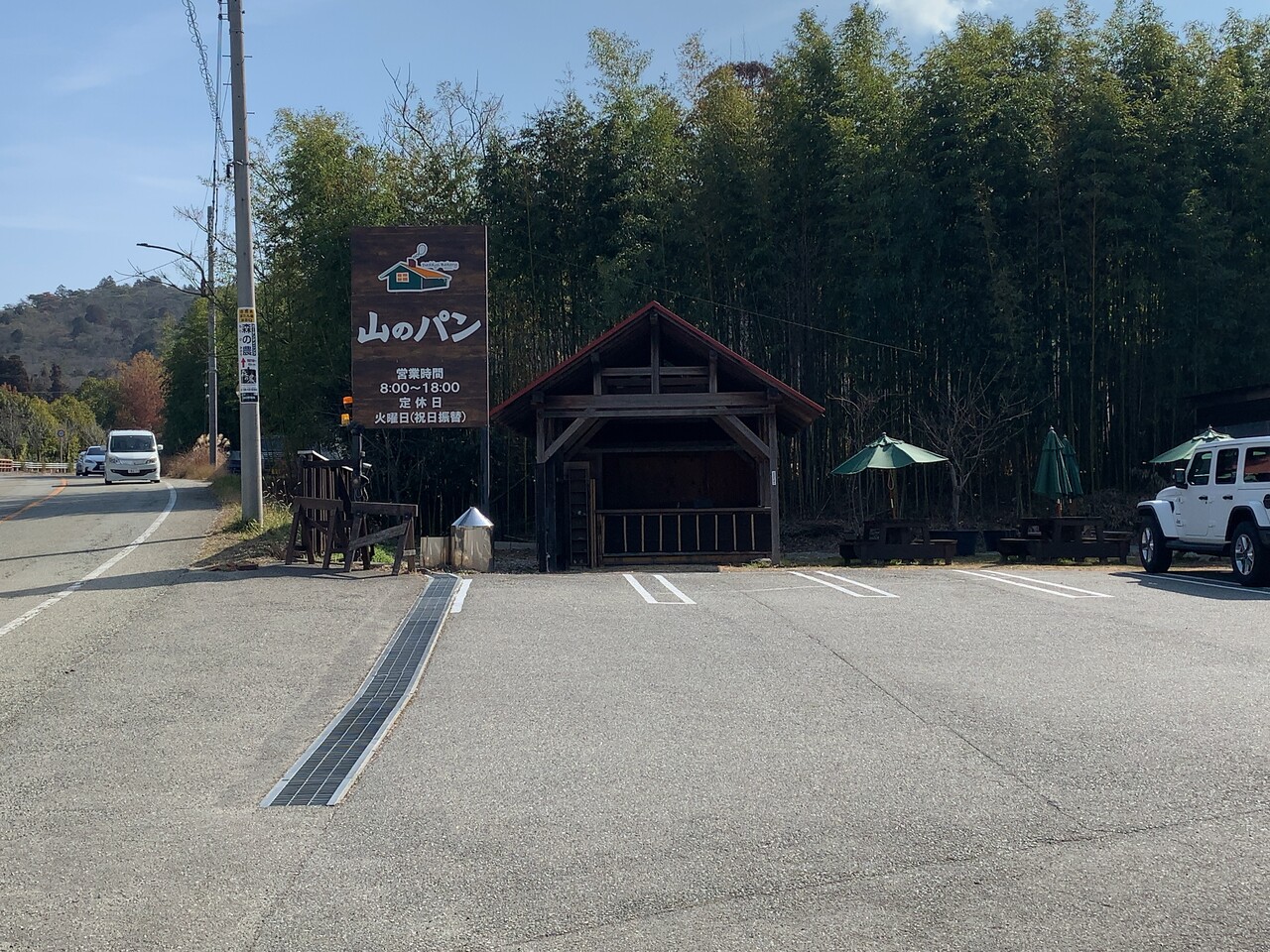 道沿い(県道83号)の左側に「山のパン」という看板が見えます。