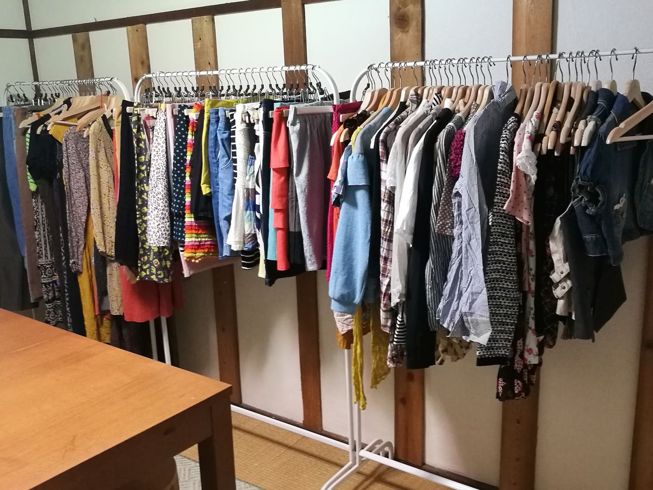 このイベントでは、買わないから着ない…試着したのに何も買わないと悪いから買っちゃうはダメダメお断りとのこと!たくさん試着して遊んでもらいたい。お見立て人が必要な時は気軽に声をかけて大丈夫。時間をかけて大人の着せ替えごっこができますね。取材当日も、近所のママ友3人がきゃあきゃあ言いながら試着遊びを楽しんでいました。実は筆者も遊ばせていただきました。