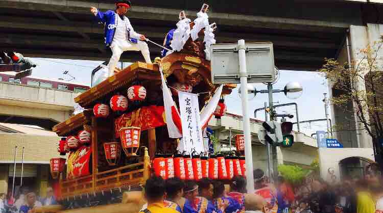 川面だんじり祭りでは、山車を引きながら宝塚一帯をぐるりと回る一大イベント。