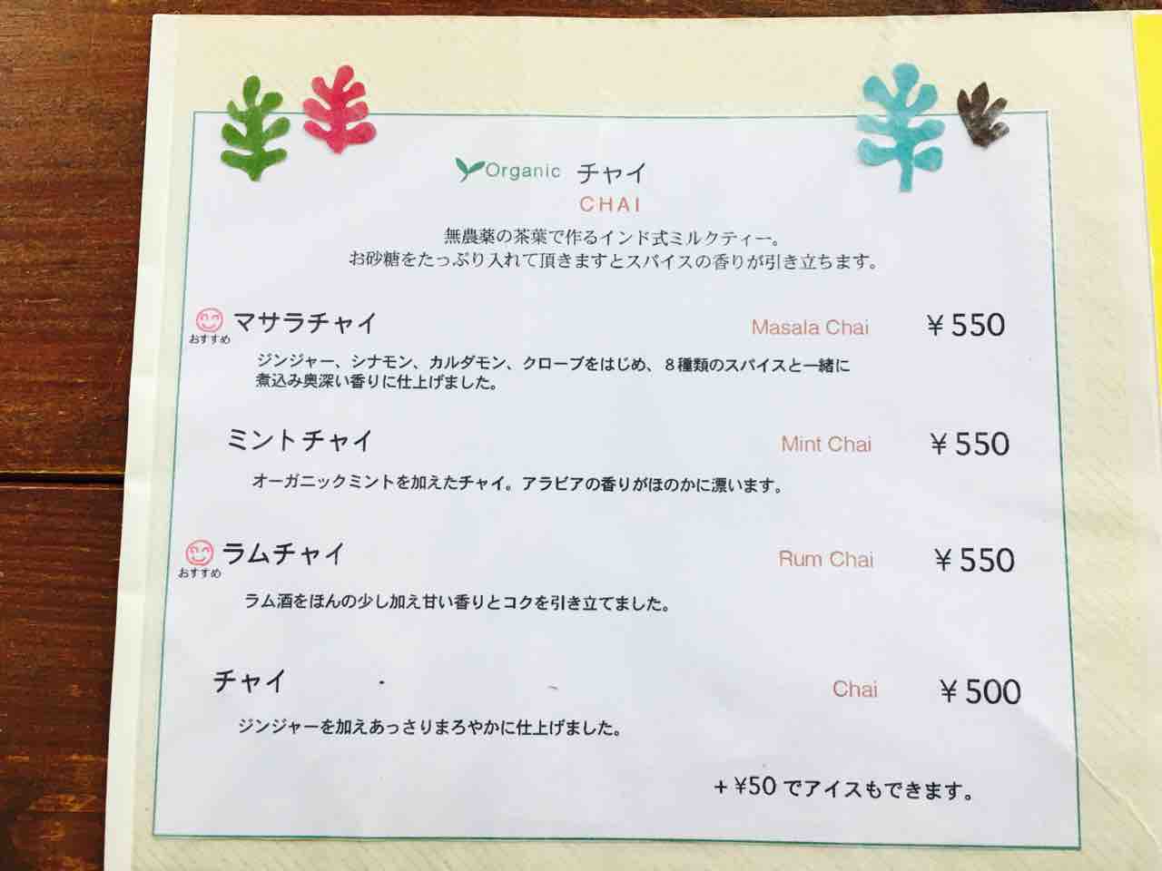 無農薬の茶葉で作るインド式ミルクティー”チャイ”の種類が豊富!