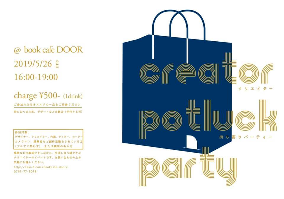 「book café DOOR 持ち寄りパティー!」クリエイター・デザイナー・作家等・興味ある方向け。