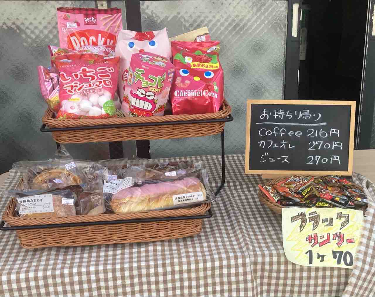 菓子パンやお菓子も売っていて便利ですね。