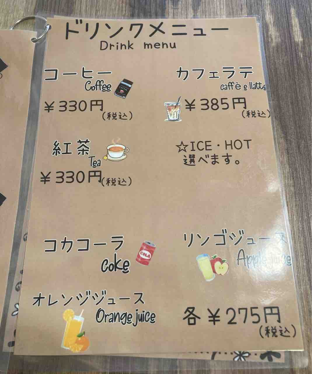 ドリンクメニュー。ジュースもあるので、お子様連れも安心ですね。