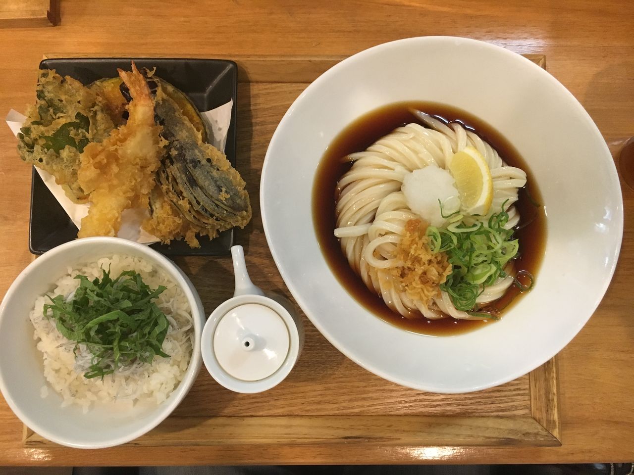 食感はさすが讃岐うどん!腰があって食べごたえがあり、そして、お出汁がサイコー。天ぷら+ご飯を引き立てる感覚で、空腹にガッツリ頂ける美味しさだった。
