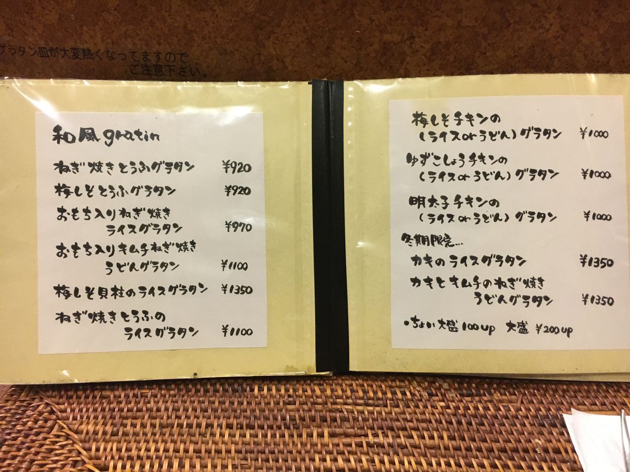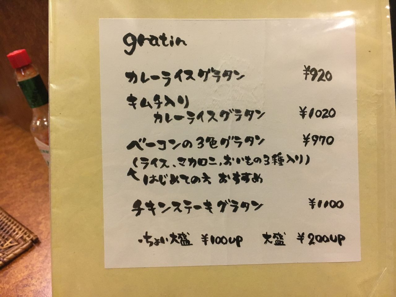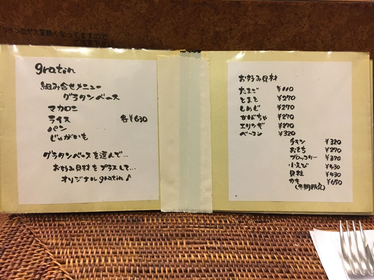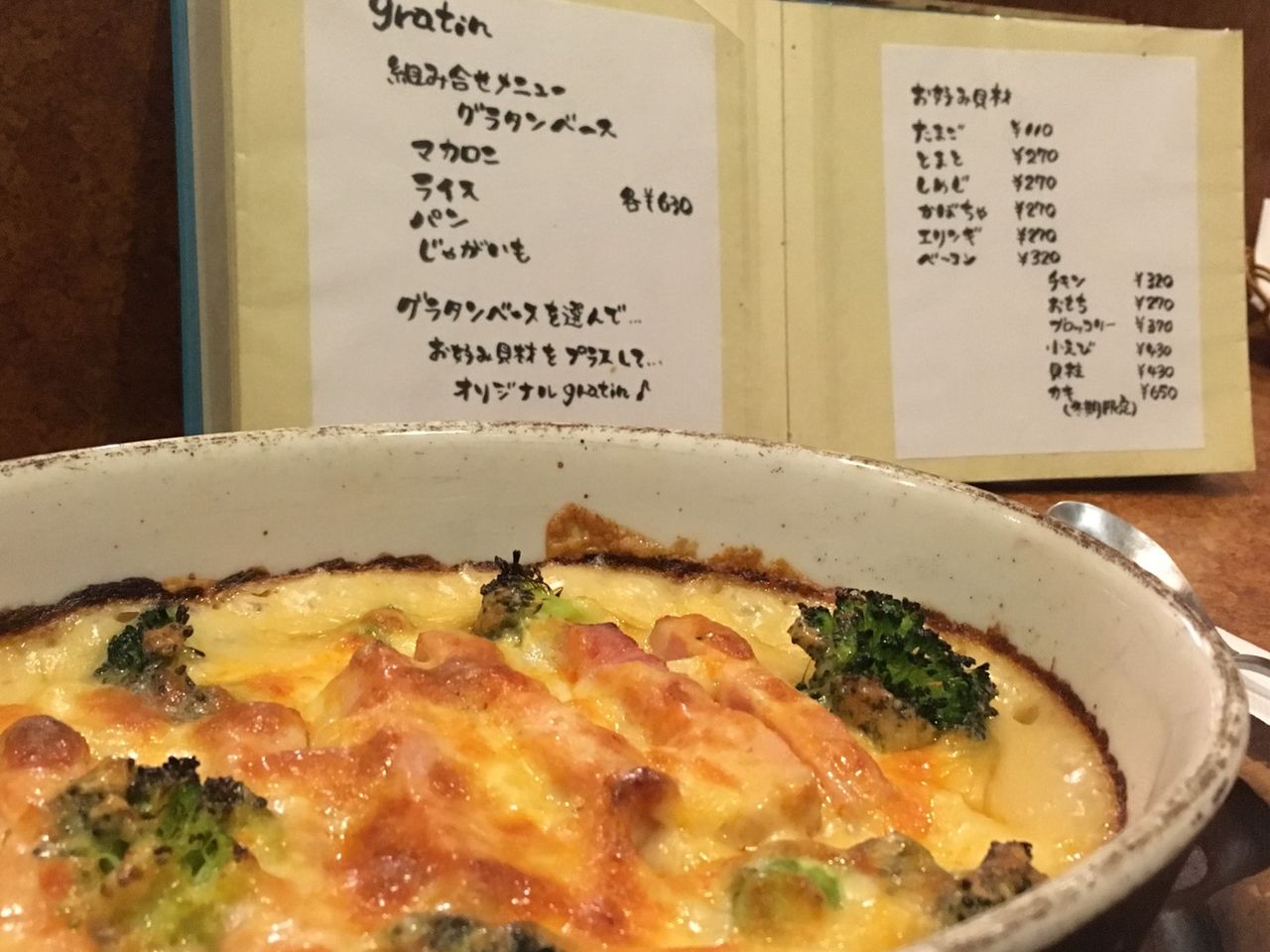 このお店の特徴は、鉄道模型だけではない。メニューが多様でとにかくたくさんある。まず、グラタンベースをマカロニ、ライス、パン、じゃがいもから選んで、具材を選ぶ形なので、はじめての人は、何を頼むか、かなり悩ましい。