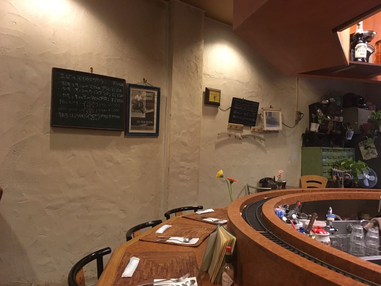 仕掛けは鉄道模型だった。店内は楕円のカウンターになっていて、そのカウンターに沿って鉄道模型の線路が敷かれており、貨物のように鉄板トレーをのせ、マスターがパワーユニットで動かしながら、お客さんの前で停めるというアナログな運搬方法。現代の回転寿司の完全自動新幹線レールとは全く異なり、味のある「まわるグラタン」のお店なのだ。