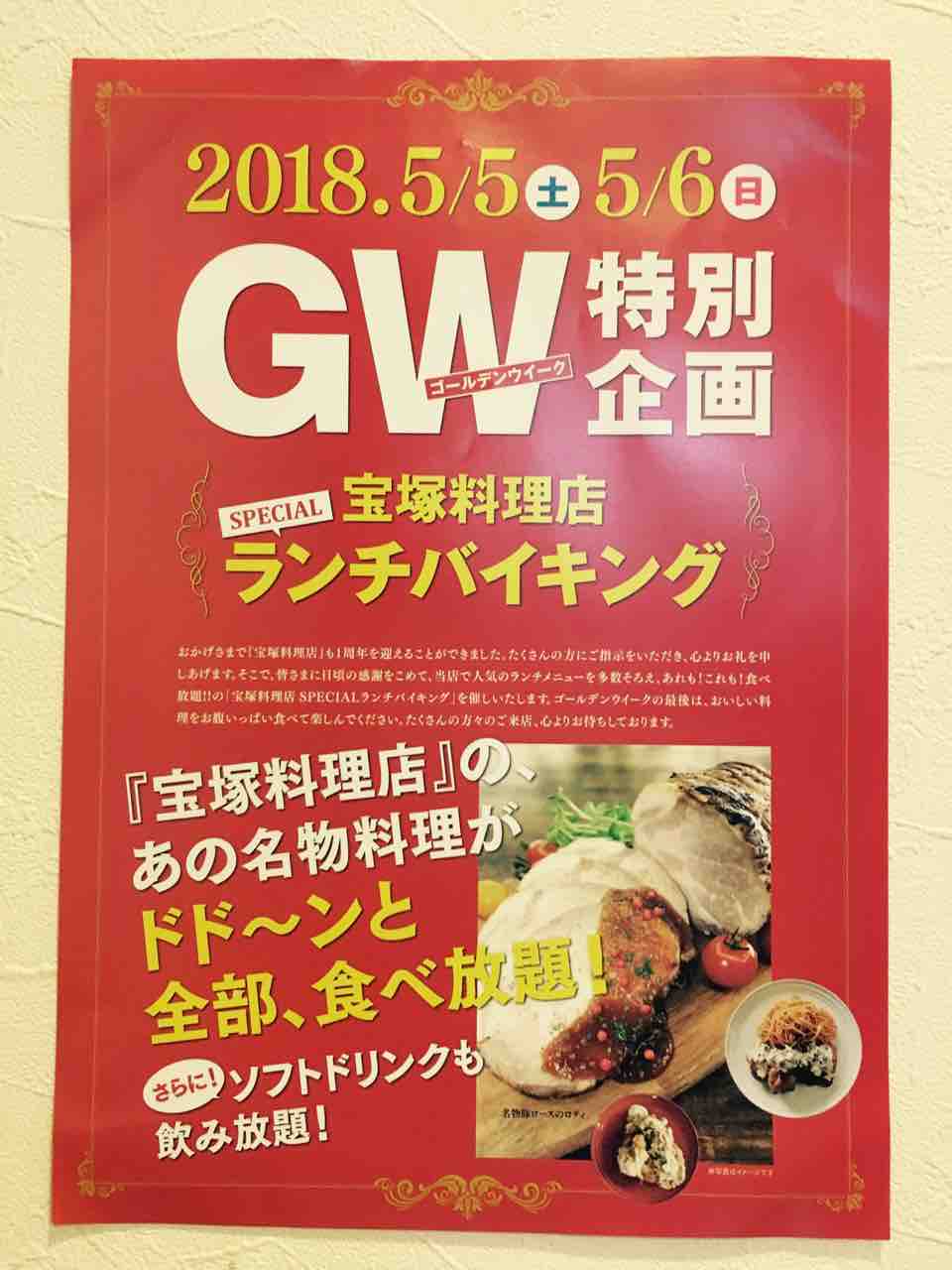 【5/5(土)6(日)】GW特別企画・ランチバイキング「宝塚料理店」
