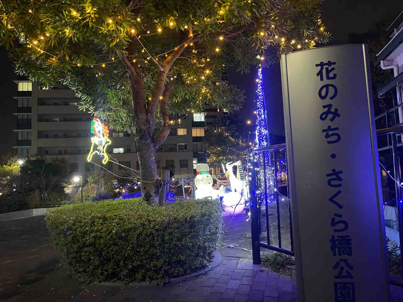 そんな中、花のみち・さくら橋公園では、恒例のイルミネーションが開催されています。