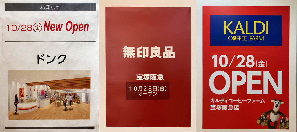 宝塚阪急での改装中のエリア(3箇所)が10/28(金)に同時にオープンする。