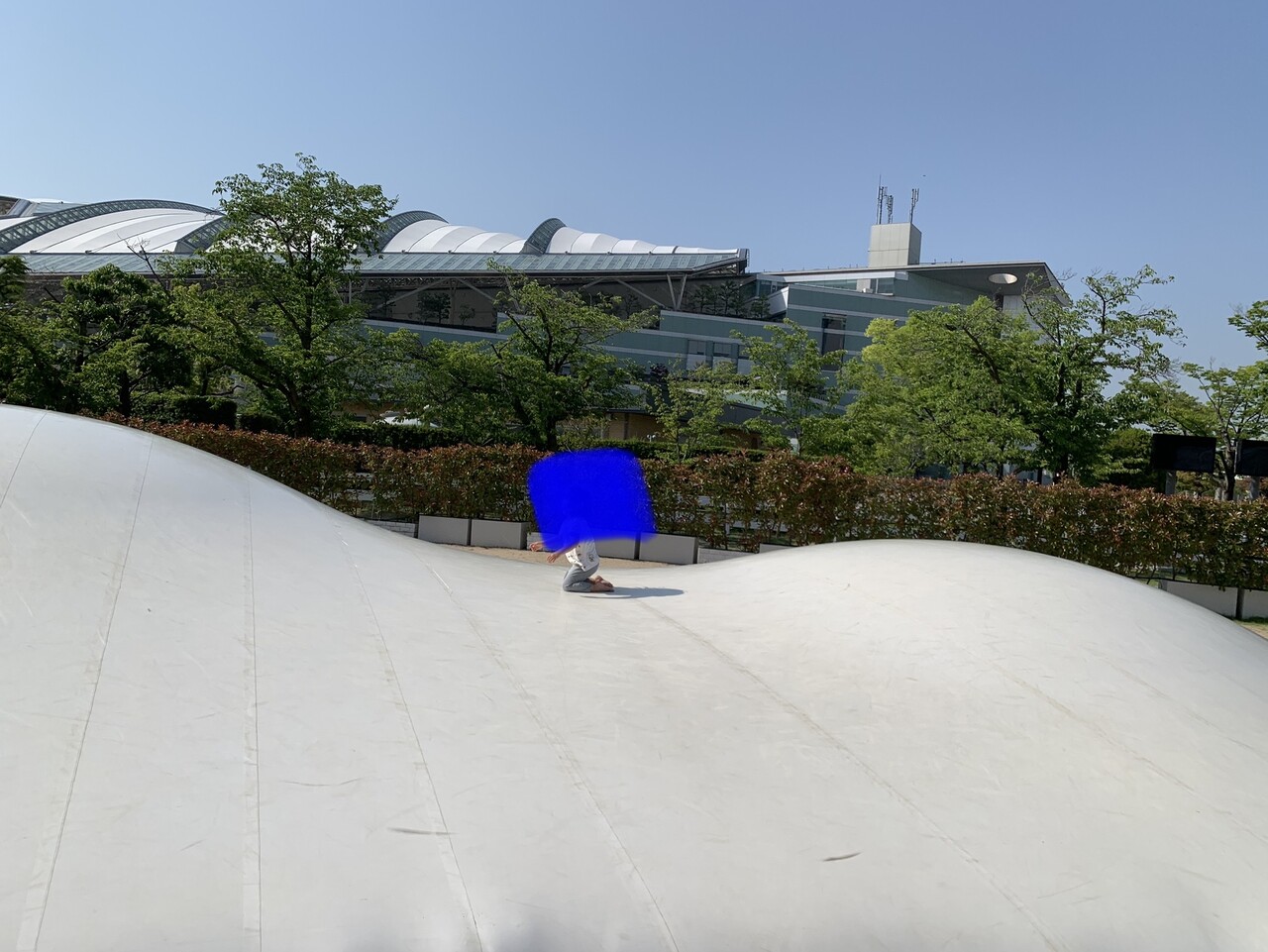トランポリンのように跳んで遊べるふわふわドームが人気。気候のいい春秋の休日は、大勢の子どもたちが跳んで混みあいます。