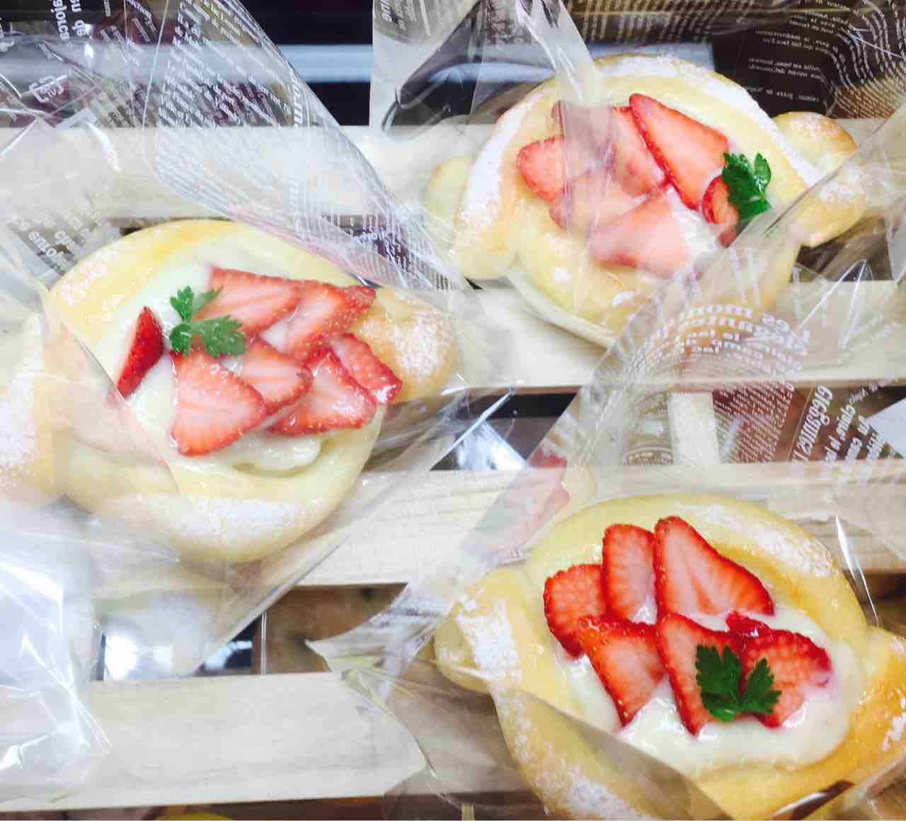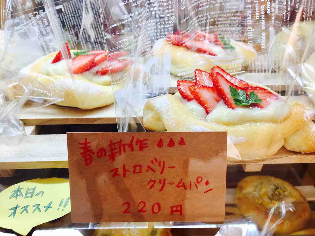 いちごが色鮮やかな「ストロベリークリームパン」220円(税別)。